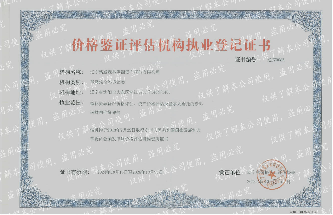 您好!欢迎来到辽宁铭威森林资源资产评估有限公司 - 林权评估、森林资源评估、苗木评估、咨询、鉴定、林业调查规划设计 官方网站!